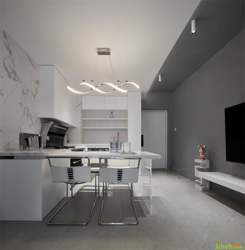 開放式設(shè)計(jì),使得空間的可視范圍得到遠(yuǎn)超過原戶型的空間享受,簡單舒適,大面積白色給整個(gè)空間帶來了清爽舒適的氛圍。