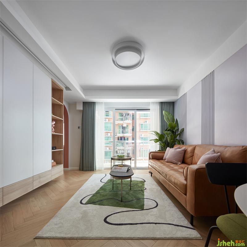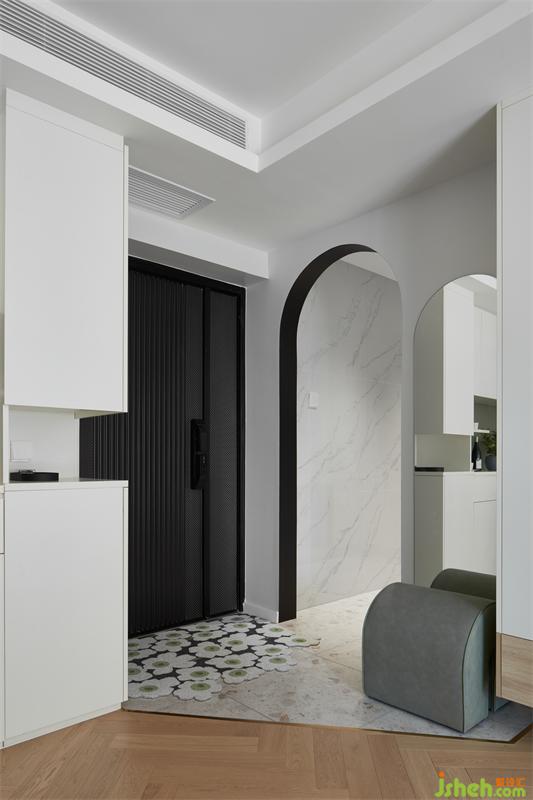 一面是柔和的色調(diào),利落的線條墻面,顯氣質(zhì)的人字拼木地板,拱形門元素,暖洋洋的陽光映照在舒適的沙發(fā)上,整個空間賞心悅目,又獨具生活氣息。