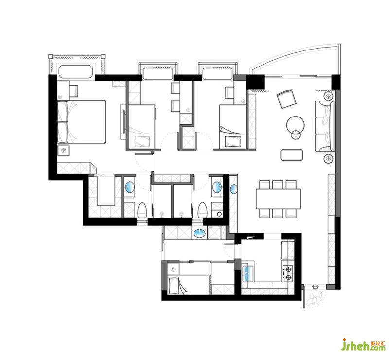 2、利用原主臥部分空間,合理打造兒童房,及原來的雜物間設(shè)計為保姆房,使原來的兩房變四房;
