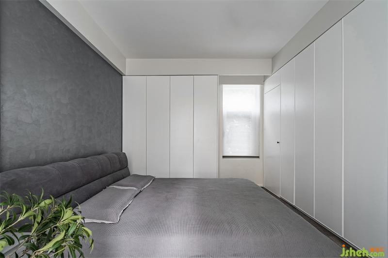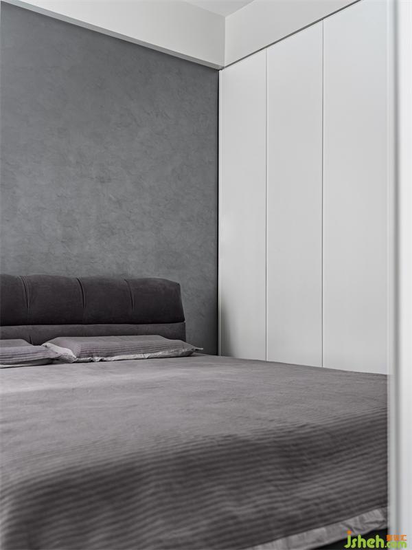 一眼望去,低飽和度的灰系藝術(shù)涂料在臥室蔓延質(zhì)感,深圳裝修設(shè)計營造出寥寥點綴的分寸感,于考究中釋放高級感。