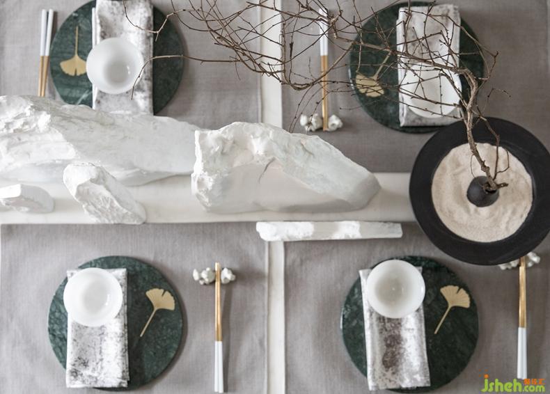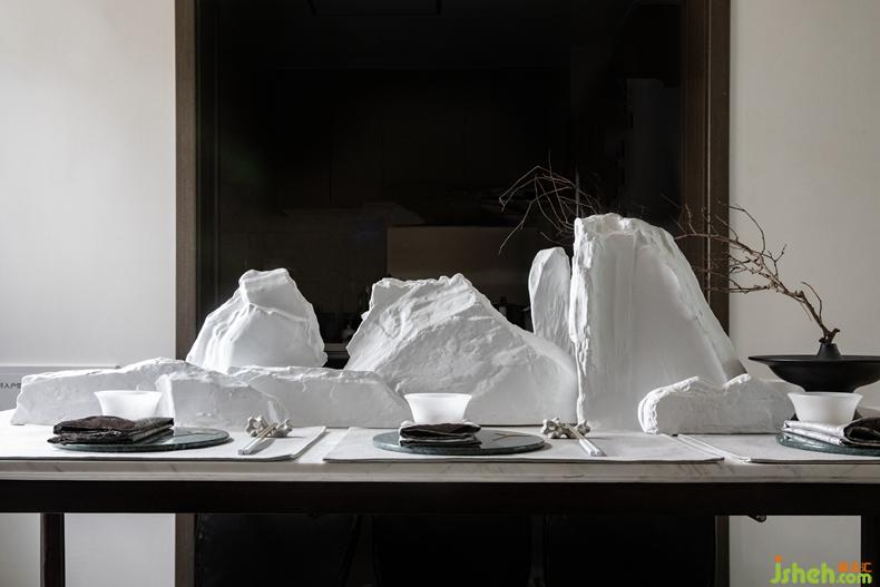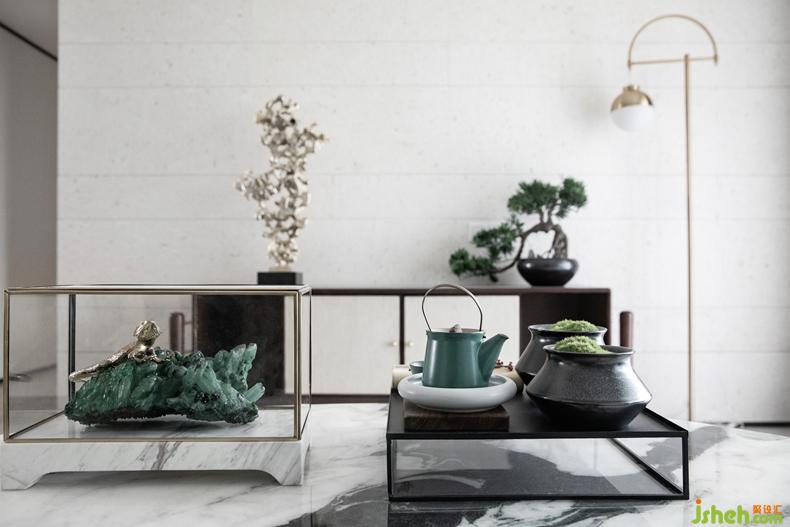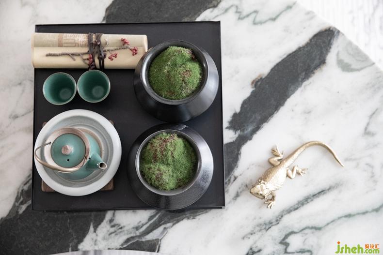 水墨畫的脫俗之境,風(fēng)格上融入極簡(jiǎn)的優(yōu)雅:碧石、盆景、光滑肌理的大理石剪影,彩瓷的田園綠,一副優(yōu)美的畫卷徐徐展開。規(guī)則的圖案與色彩搭配創(chuàng)意的不規(guī)則,和大量的肌理工藝帶來豐富的視覺效果。