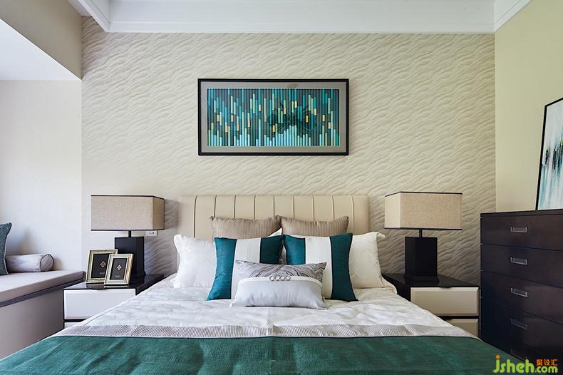 次臥較之整個(gè)空間來(lái)說(shuō)略為淡雅