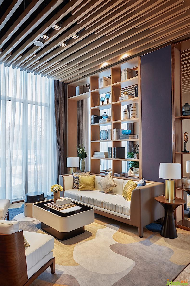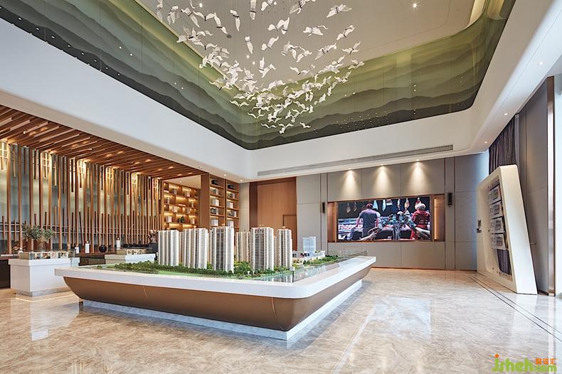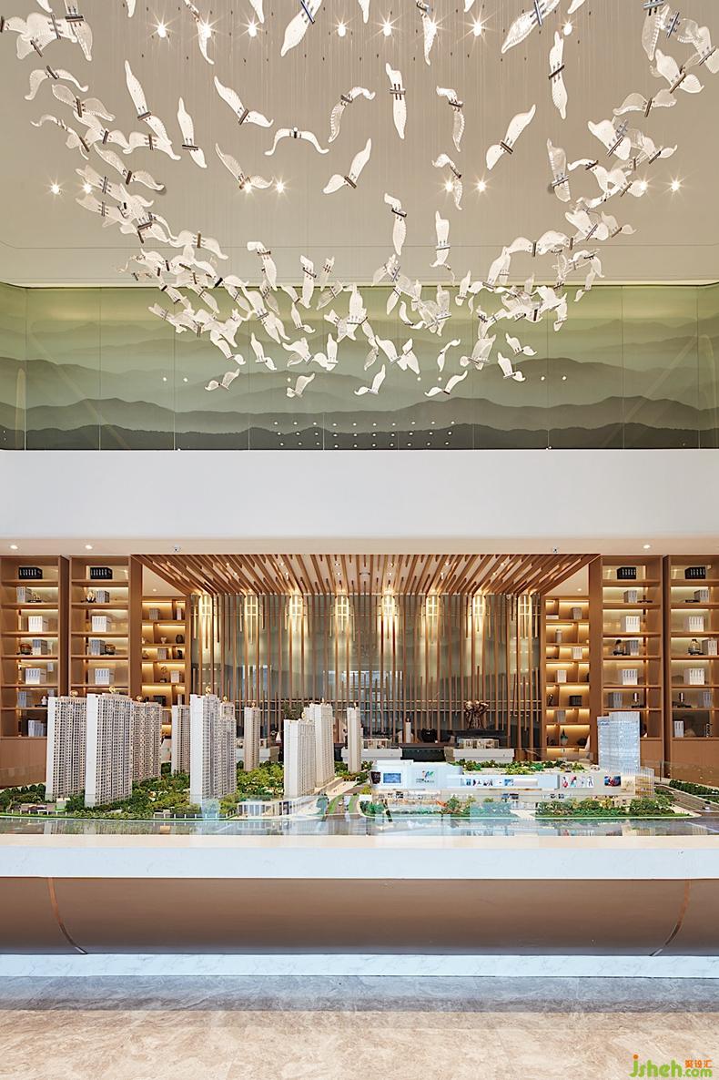 落地窗將窗景引入室內(nèi),增加空間的趣味性,通透感使人置身其中更加放松。入口沙盤吊燈形狀被起伏的山水畫縈繞,將現(xiàn)代都市與自然靜謐的人文生活展現(xiàn)出。設(shè)計(jì)公司