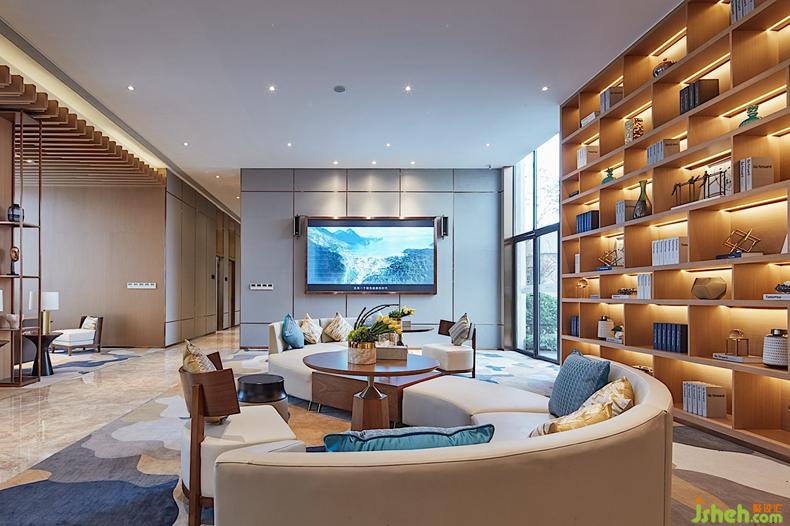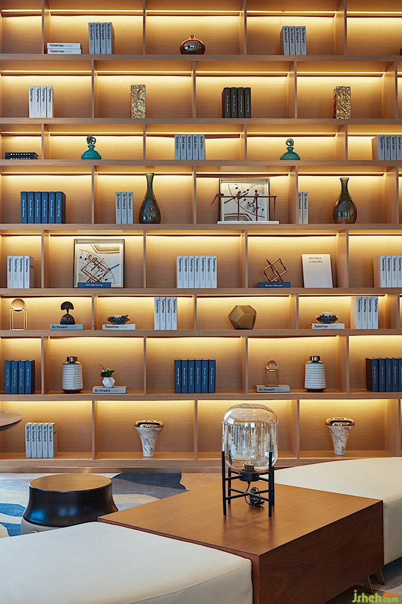 進入洽談區(qū),半開放式洽談區(qū)域以書架作為鏤空隔斷,滿足洽談區(qū)私密性的同時不會有擁擠。設(shè)計公司
