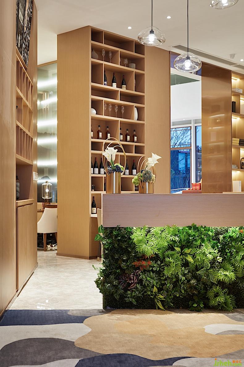 地毯與沙發(fā)很好的將這部分休息洽談區(qū)與其他區(qū)域區(qū)別開來。呈現(xiàn)其獨特性,開放式的設(shè)計,臨近水吧,增添舒適與放松。
