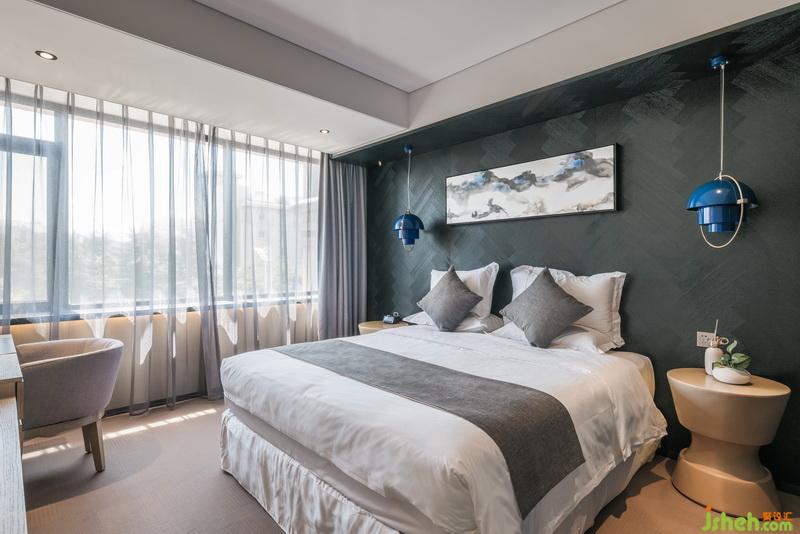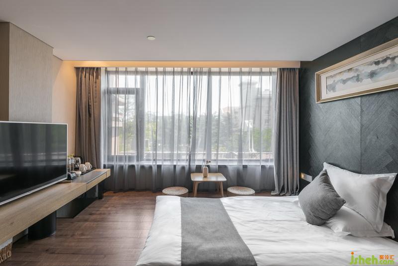 「汐潮間」坐落在二三層的客房。休息的場(chǎng)所是結(jié)束一天奔波與繁忙的終點(diǎn),也是迎接新的一天的起點(diǎn)。設(shè)計(jì)公司大面積的落地玻璃將夜晚的月暈和早晨的陽(yáng)光引進(jìn)室內(nèi),房間的大理巖延續(xù)了簡(jiǎn)約中性的灰色調(diào),同時(shí)混合了輕盈的白色與原木,再裝點(diǎn)以柔軟的纖維和黑橡木的芬芳,呈現(xiàn)出一種柔軟舒適的休憩氛圍。