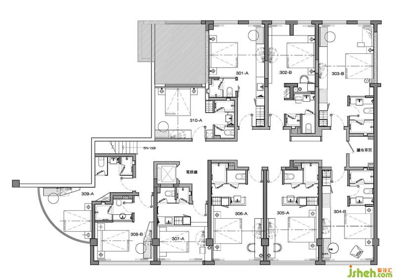 建筑面積:一層97㎡、二層196㎡、三層207㎡,總計(jì)500㎡