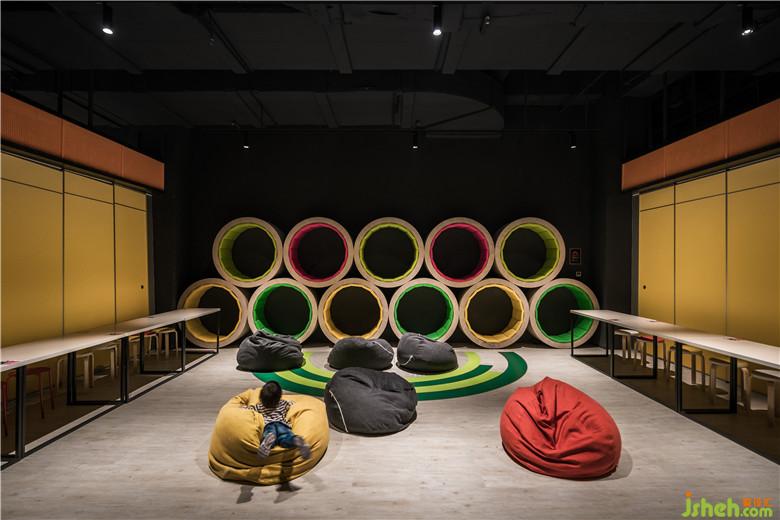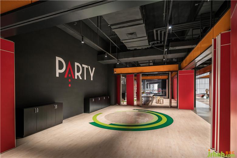 5F則以餐飲與PARTY為主軸,延續(xù)公園的概念,利用地面色彩與跑道作為元素的延伸,不同大小的PARTY ROOM以豐富明艷的色彩點(diǎn)燃客戶(hù)的視覺(jué)饗宴,并透過(guò)各種活動(dòng)移門(mén)滿(mǎn)足各種功能。