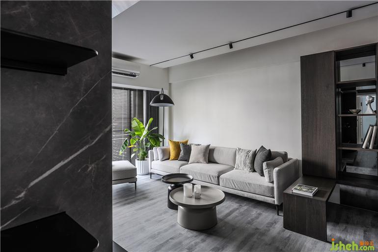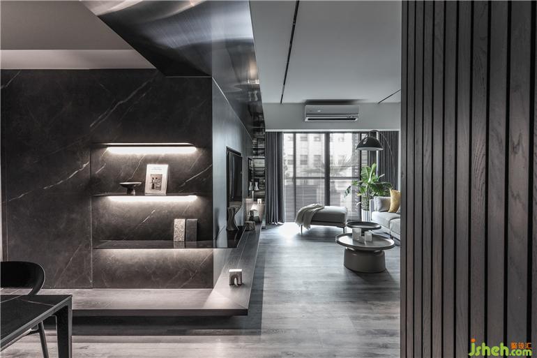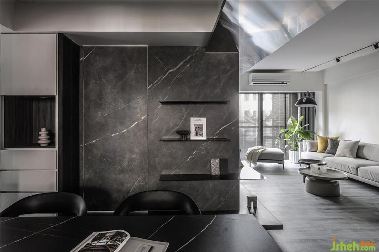 喜歡旅行、時常飛行各地工作的屋主一家人,回到家的第一眼就充滿著慵懶與愜意:低明度色彩的沙發(fā)延伸至窗邊的植栽,家裝設(shè)計(jì)與開闊的陽臺形成一幅明亮的風(fēng)景。電視墻以大理石的自然紋面為襯底,下方的木質(zhì)層板展示著屋主收藏的雕塑,生活上的雜物收納則安排在玄關(guān)與餐廳的柜體,客廳僅保留最純粹的機(jī)能—簡單放松。