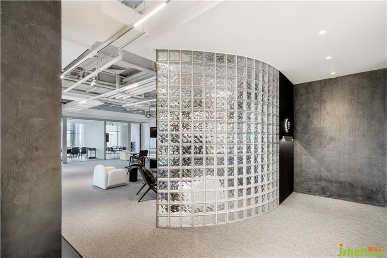 穿透是本案的設(shè)計(jì)主軸,辦公室設(shè)計(jì)藉由天花的裸露與包覆、地坪的層高差異、材質(zhì)的量體輕重,更輕透地布局各區(qū)域,透視的視覺(jué)讓思緒可以自由地來(lái)回穿梭,不論在哪一個(gè)區(qū)域,都能環(huán)視整個(gè)空間,采光也均勻分配至每個(gè)角落,智能玻璃能針對(duì)各區(qū)域的使用需求,轉(zhuǎn)換為全霧面的隱密模式。全開(kāi)放式的場(chǎng)域,找個(gè)位置隨意的坐下來(lái),一臺(tái)筆電一杯咖啡,就能開(kāi)始工作,對(duì)于來(lái)訪的客戶同樣也能感受這種不拘束的生活質(zhì)調(diào)。