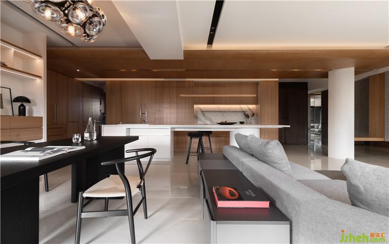 材質(zhì):水磨石、意大利薄版磚、噴砂橡木實(shí)木皮、明鏡、灰鏡、毛絲面不銹鋼、黑鐵噴砂黑烤漆、霧面噴漆、倒角海島型實(shí)木地板、寬版黑色鋁百葉