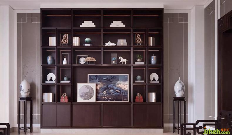 數(shù)百年前,朱子“月印萬川”的哲思充分體現(xiàn)了圓融的智慧。設計師從中國傳統(tǒng)文化中提取設計元素,籍以展現(xiàn)潮汕文化的蔚為大觀。在設計上,一層采用三進式入戶規(guī)制的設計思想,打造縱向延伸的空間層次感??蛷d一面序列安放著規(guī)則幾何紋路的玉石墻面與壁燈,另一面以對稱感的藝術展示架收藏主人平日賞玩的心儀之物,營造出“試看青松鶴,何似朱門客”之意境。