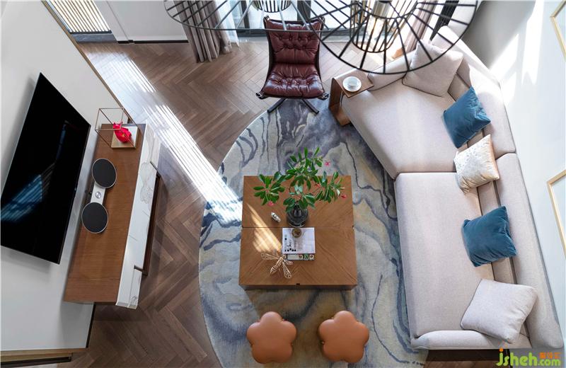 電視柜雅致古樸的線條與地毯水墨紋理一脈相承,為客廳增添了幾分雅致與悠遠(yuǎn)。