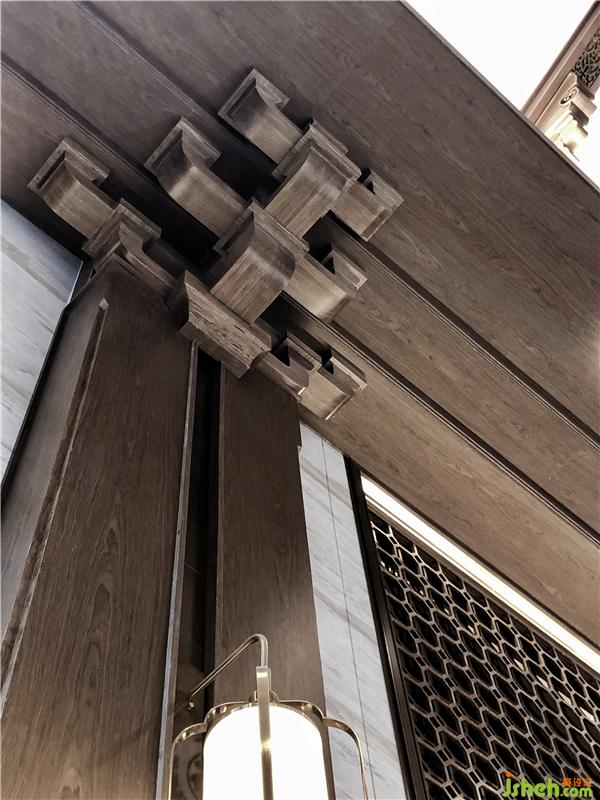 “山”為風(fēng)骨,“云”為志向。接待臺(tái)區(qū)背襯巨幅漆畫(huà)木雕花,將山、云元素精鏤細(xì)刻,融為一體。駐足觀瞻之際,仿佛身已在深山中,山中有云,云中有山,空間的禪意被自然地渲染而出。兩側(cè)對(duì)稱置暖色燈帶,帶來(lái)一絲安靜與溫潤(rùn)氣質(zhì)。接待臺(tái)輔以水晶玻璃磚飾之,與古銅色不銹鋼形意合一,都市文化與傳統(tǒng)氣息于此交融。裝修設(shè)計(jì)