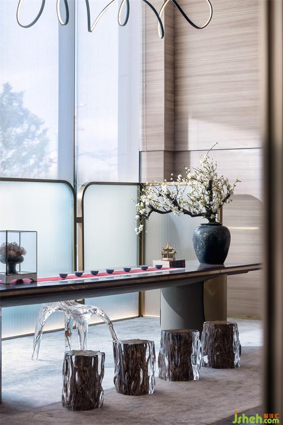 深圳本身就是一座不被常規(guī)定義的城市。深圳營(yíng)銷(xiāo)中心設(shè)計(jì)茶空間串聯(lián)起生活美學(xué)、社交聚友、藝術(shù)休閑等多元形態(tài),賦予空間以城市的包容姿態(tài)。繁忙中相聚,花香裊裊,茶韻繚繞,談話(huà)無(wú)拘,構(gòu)建出令人備生好感的生活美學(xué)與休閑空間。