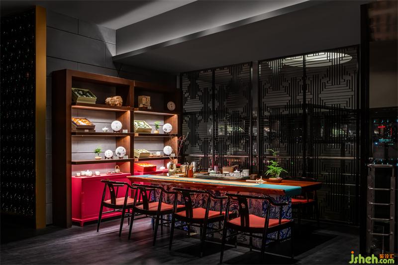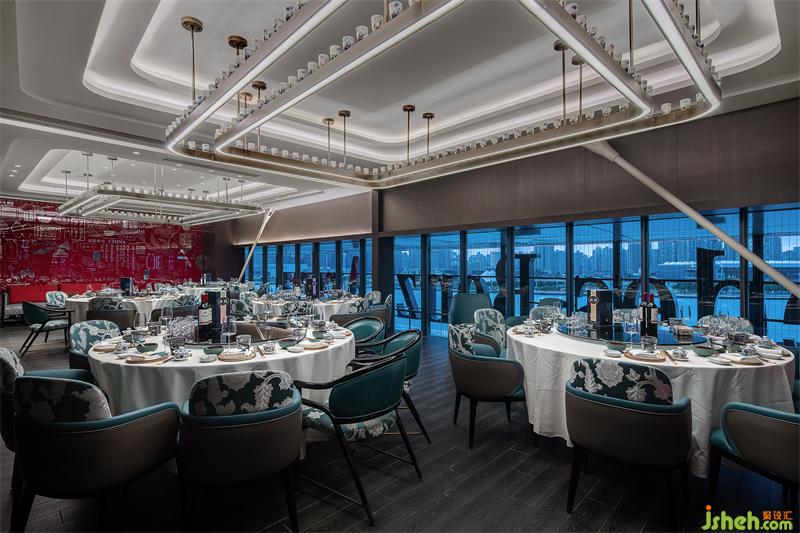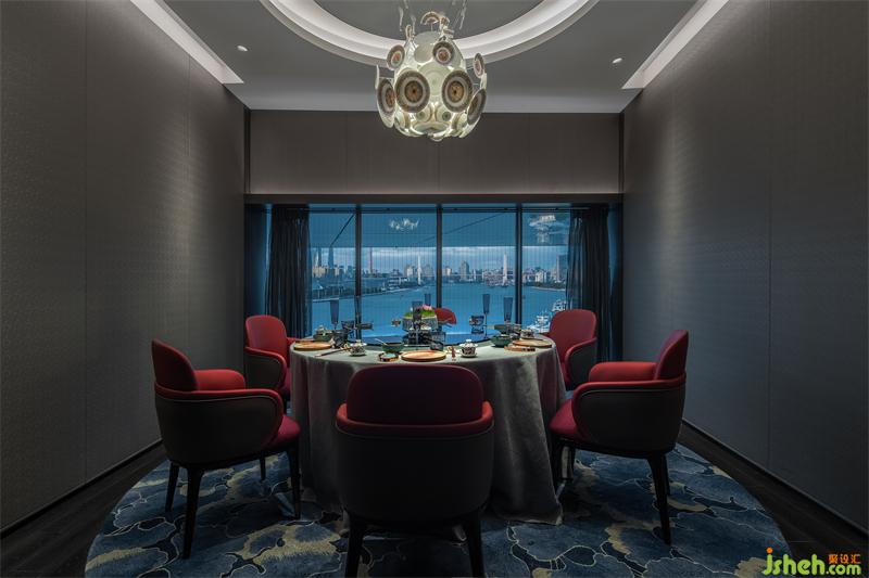 悅江餐廳的另一設(shè)計特點,是餐廳的燈光與照明設(shè)計,燈光的設(shè)計需在客人的用餐體驗和藝術(shù)展示體驗中找到較為恰當(dāng)?shù)钠胶獾?,燈光不僅能有效規(guī)劃營造出空間的商業(yè)場景氛圍需求,同時也能帶給客人高品質(zhì)的藝術(shù)觀賞體驗。燈光的設(shè)計在此起到了至關(guān)重要的作用。