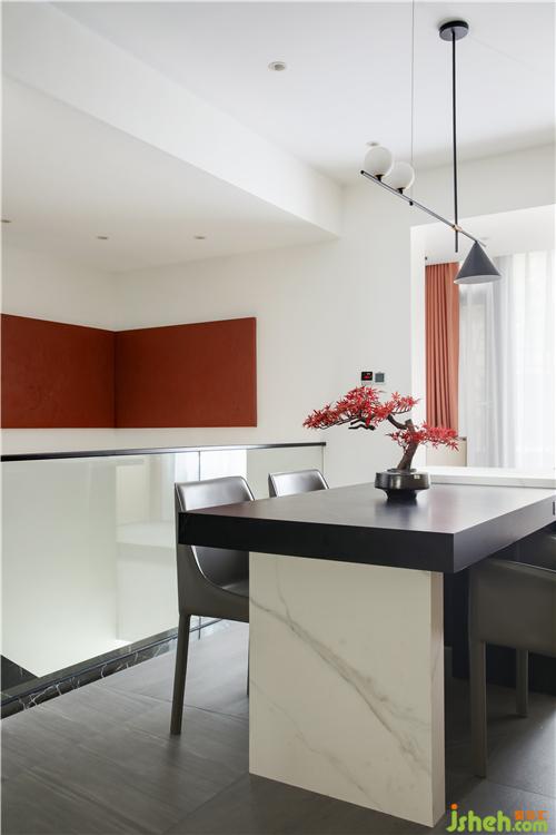 The jazz white marble on the TV background wall provides the tranquility of the whole surface, and the large area of white space on the point of view creates a new sense of balance inside. The calm and cold black is intertwined, and the furniture and utensils have an artistic effect on the material, texture and color. Combining the artistic conception of light and shadow, mobilize residents' rich and three-dimensional perception of a better life.