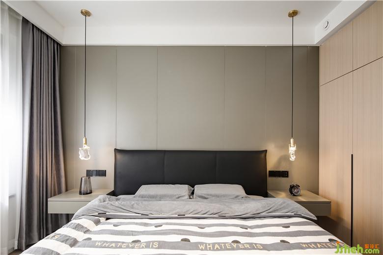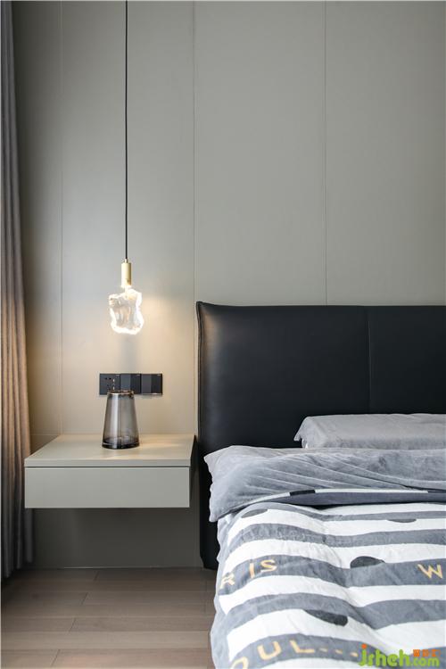 Continue the overall color and style tone, giving the master bedroom a calm and comfortable look. The line design of the bedside background wall creates the level and rhythm of the space, and the echo of the color blocks between the bedding makes the space more lifelike and artistic.