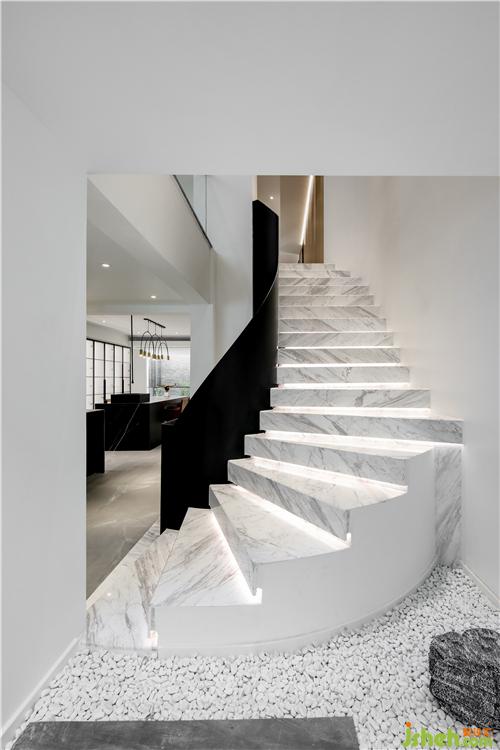 疊墅設(shè)計為了打破空間的局限性,設(shè)計師把下沈庭院打通至負(fù)二層,將原有的封閉式樓頂,開出一口采光井,線條幹練有力,讓外部光線自然傾瀉下來,照亮室內(nèi),使整個空間都獲得了自在的呼吸之柱。