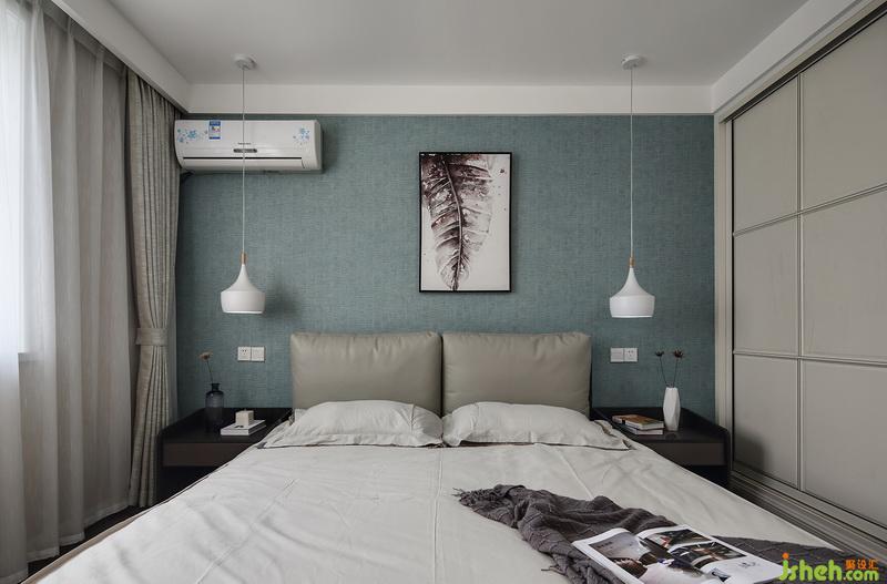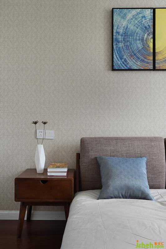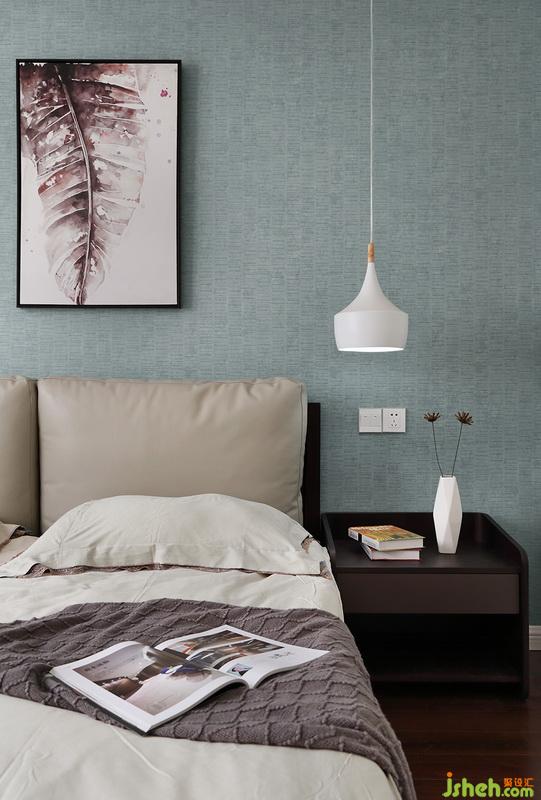 主臥墻紙的顏色淡雅柔和,一副不對(duì)稱掛畫(huà)讓空間不再循規(guī)蹈矩。