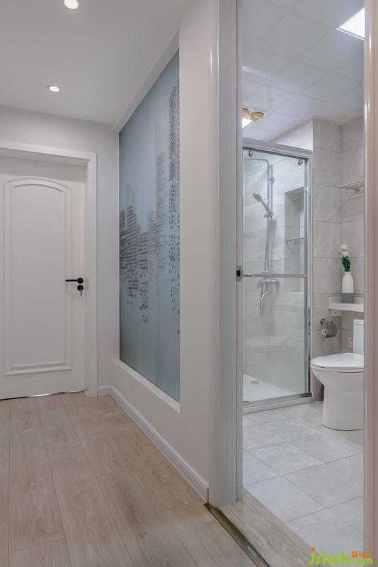 衛(wèi)生間外墻嵌入大面積磨砂玻璃增加通透感,一堵實(shí)墻就壓抑很多。