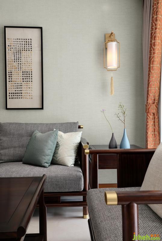 中式家具講究對稱,中矩,色彩上多采用樸素穩(wěn)重的顏色,所以在前期硬裝設(shè)計的時候就做了好鋪墊,整體墻面選用雅致亮色系做鋪墊。除了家具和局部柜體選擇了深色系,其他用色都相對明朗。