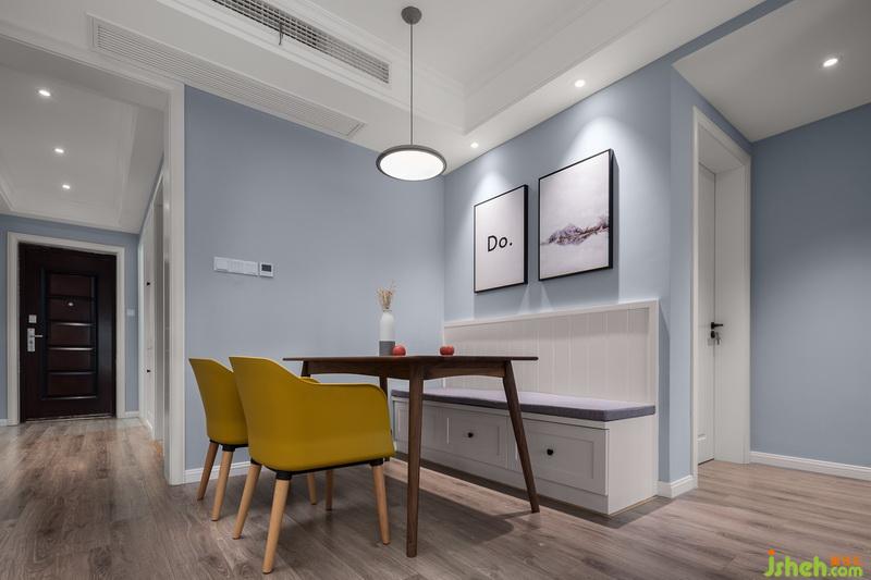 這個(gè)視覺看餐廳可以看到中央空調(diào),小戶型的空間更是精益求精,如果用上掛機(jī)就會(huì)失色很多。同樣為了節(jié)約空間,靠墻設(shè)計(jì)了卡座,下面可以儲(chǔ)物,上面定制了可曬洗墊子,舒適和實(shí)用都解決了。