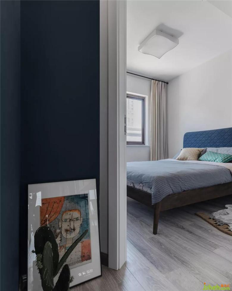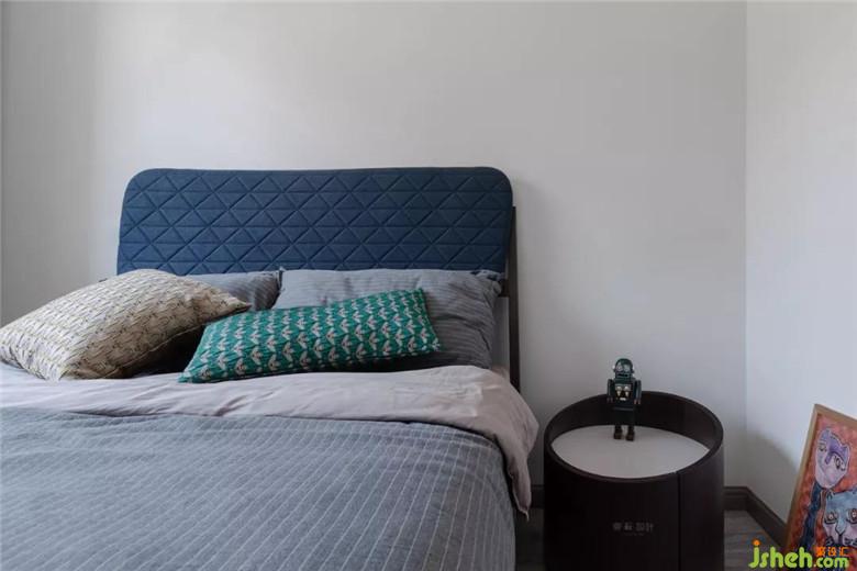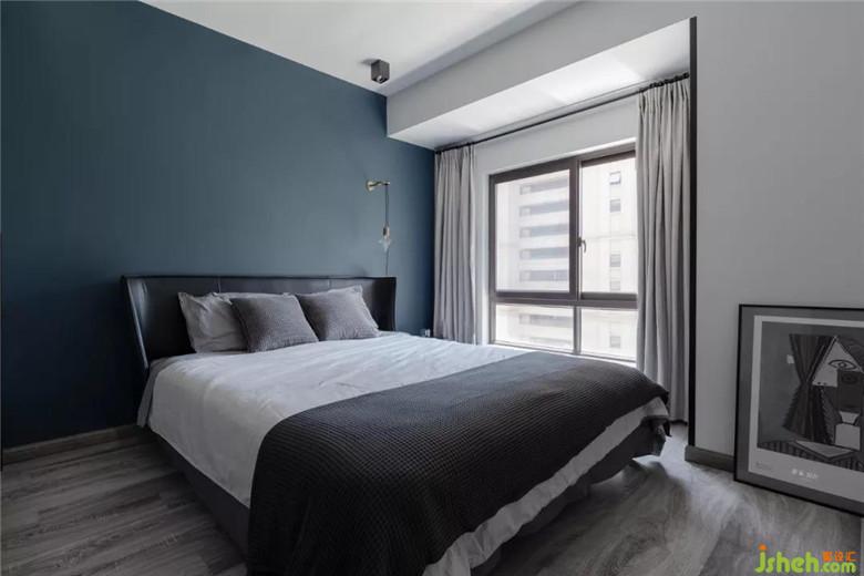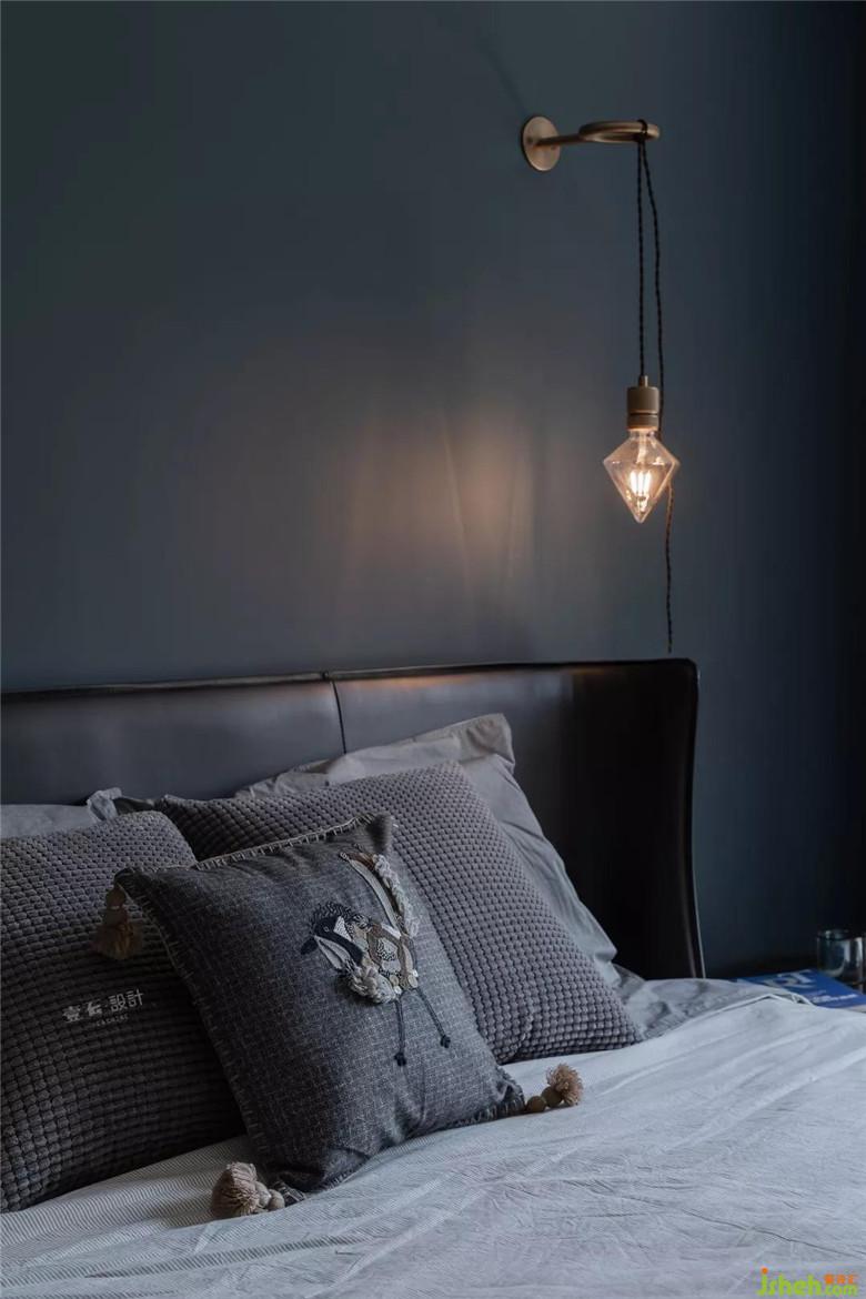 主臥床頭背景室內(nèi)設(shè)計(jì)師選用深色藍(lán)配上皮質(zhì)床,與人而言氣質(zhì)是一種精氣神,對物而言看著就讓人心情愉悅而美好?!肚f子·盜跖》里就提出美麗的東西讓人身心舒暢,想要更好地生活,快樂地生活。所以我們需要讓自己更多的接觸美,讓自己更多的處在美的環(huán)境。