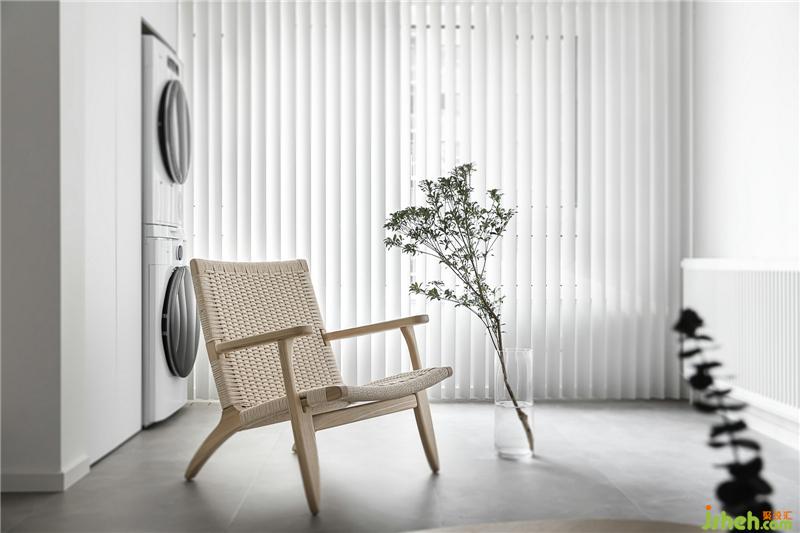 陽臺(tái)選用了木條紋百葉簾,葉片垂直疊加,明媚的日子,陽光透過空隙穿入室內(nèi),自成一道風(fēng)景。