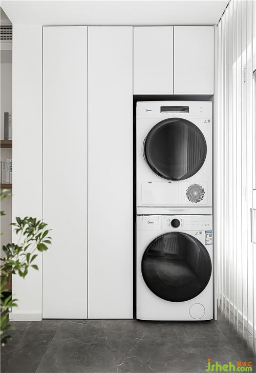 陽臺(tái)收納柜和洗烘機(jī)的結(jié)合。