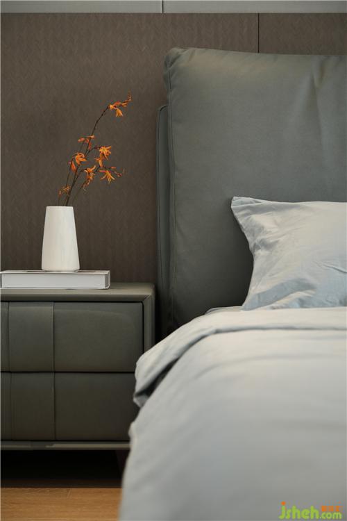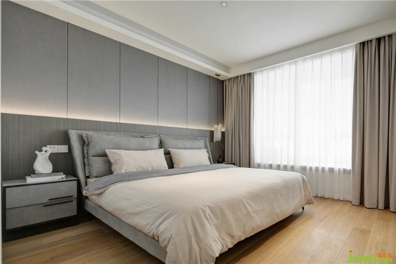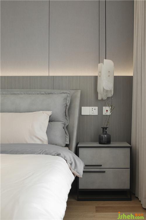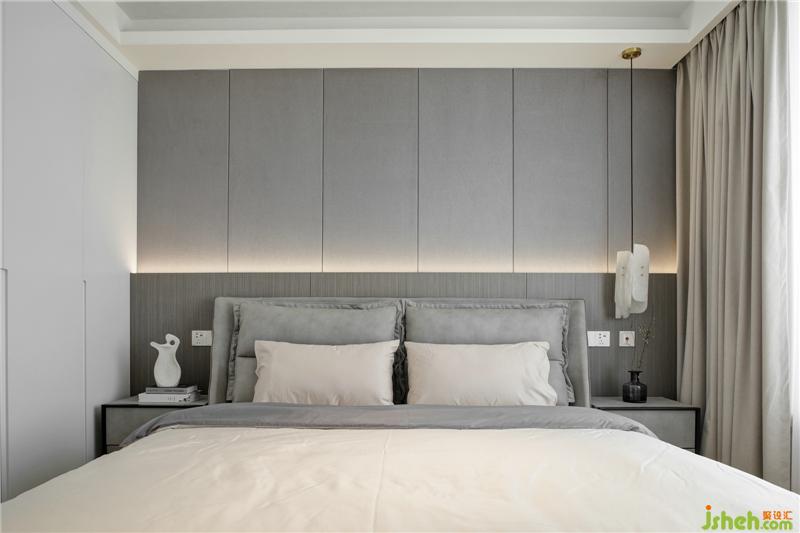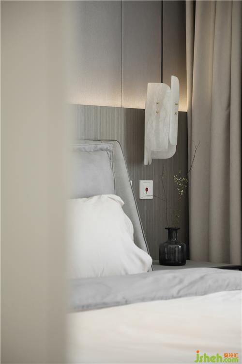 床頭背景墻暗藏?zé)魩?,豐富床頭的層次,也給父母營(yíng)造時(shí)尚高級(jí)感。