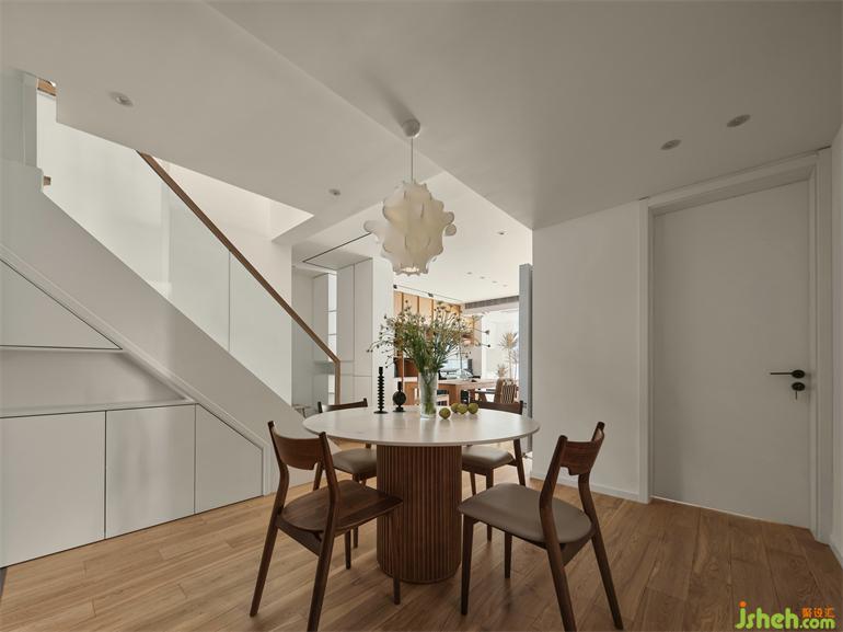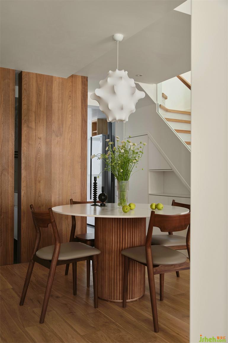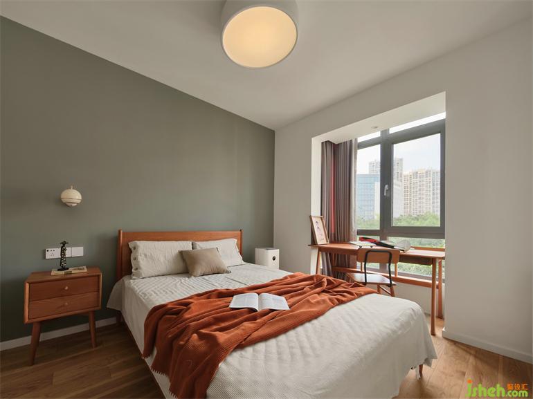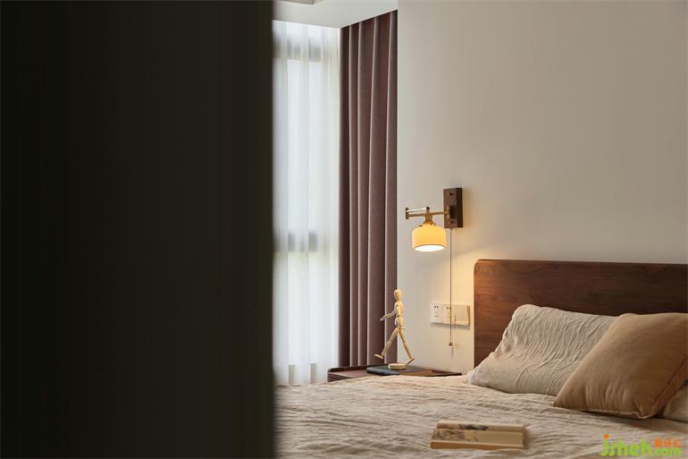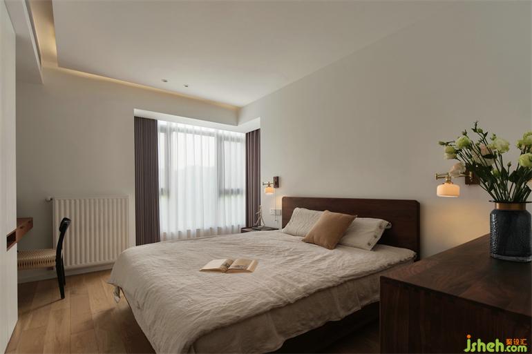 臥室以質(zhì)從簡,樸素的木質(zhì)床,復(fù)式裝修設(shè)計(jì)搭配棉麻質(zhì)感的床品,兩盞床頭燈營造寧靜的閑適。