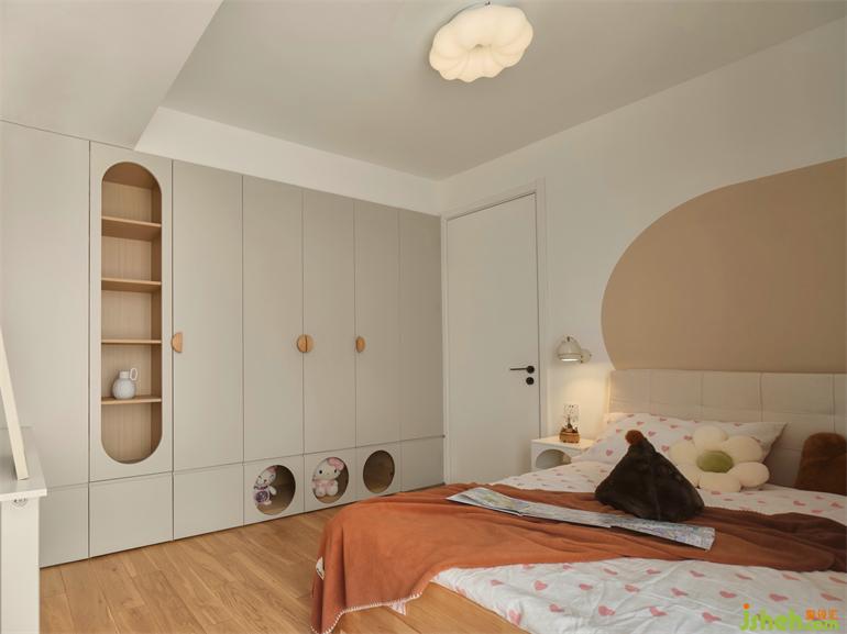 女孩房以俏皮活潑為理念,墻面用粉色點(diǎn)綴,柜子局部形態(tài)可掬,復(fù)式裝修設(shè)計(jì)最底下的柜子除了可愛還方便孩子拿取。