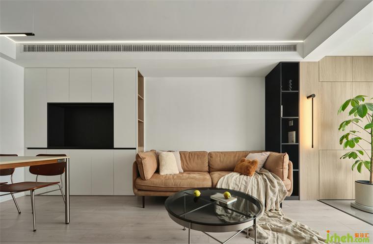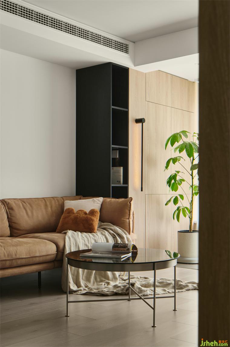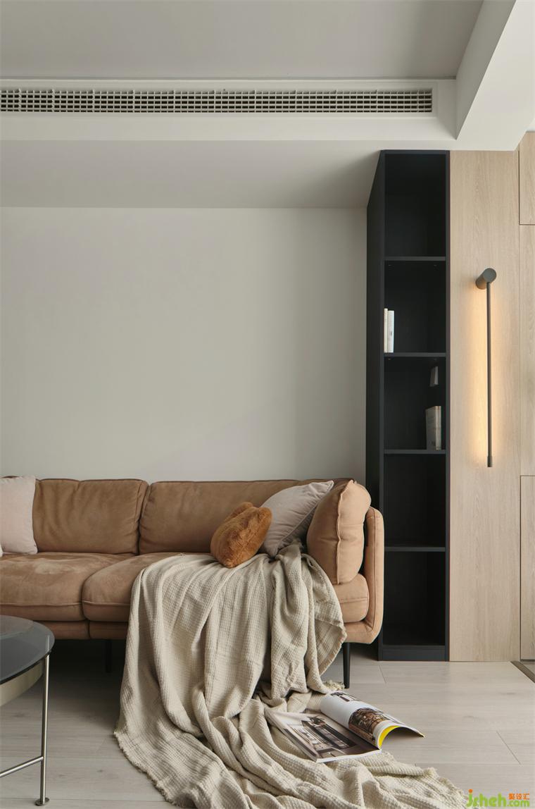 沙發(fā)側(cè)邊開放式柜體,方便就近拿取物品,室內(nèi)設(shè)計(jì)師在設(shè)計(jì)上營(yíng)造露出顯大的視覺感