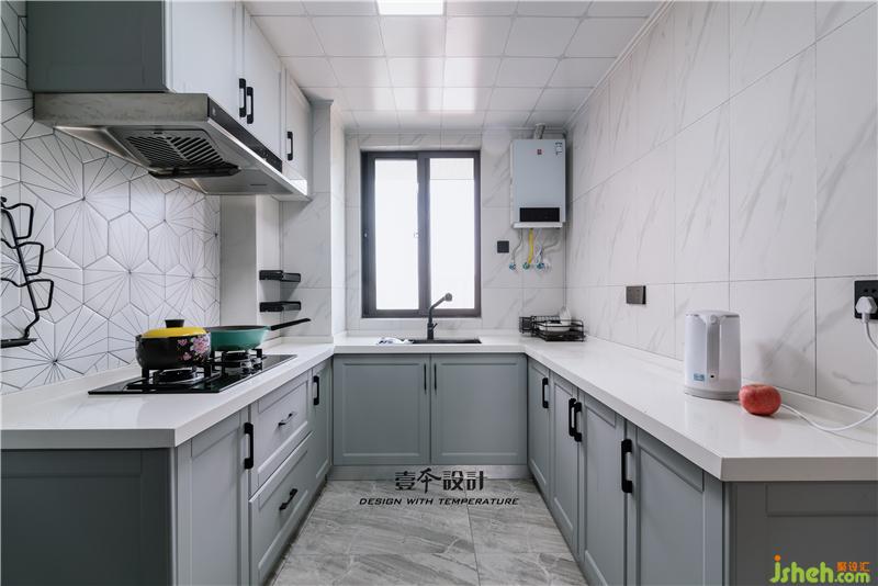 ▲白色的墻面搭配灰色的地面,黑色的置物架點(diǎn)綴空間,俏皮的黃色和綠色跳出了整個(gè)的寧?kù)o感,創(chuàng)造了一個(gè)冷酷美感的廚房空間。