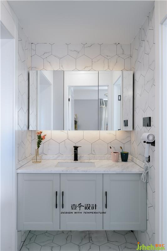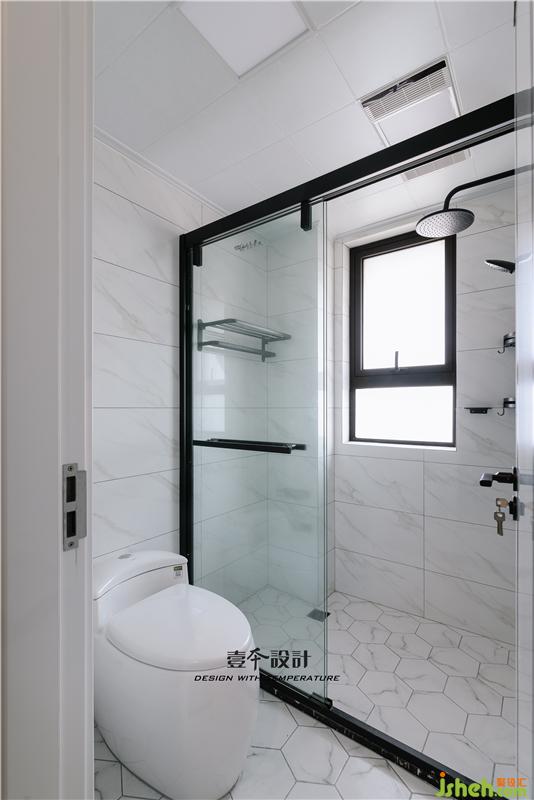 ▲簡(jiǎn)潔的墻地磚,搭配黑色框的淋浴房,通透明亮的空間可以褪去工作歸來(lái)一身的疲倦。