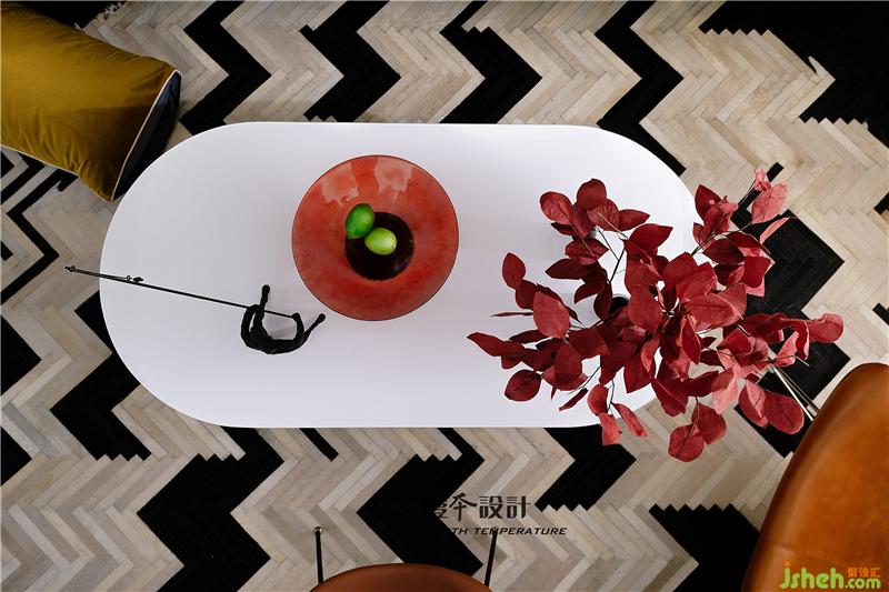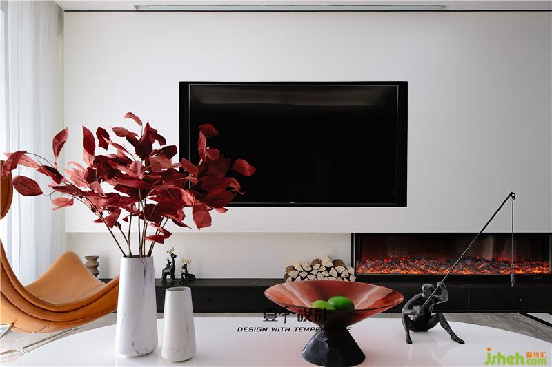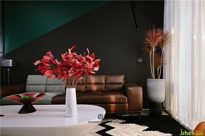 沙發(fā)背景墻巧妙的采用了分色處理,綠色乳膠漆搭配黑色的啞光木飾面,綠色的生機與活力剛好給原本沉悶的黑色增添色彩感。整個客廳充滿了張力,反襯出一種別樣的視覺效果。室內(nèi)設(shè)計師