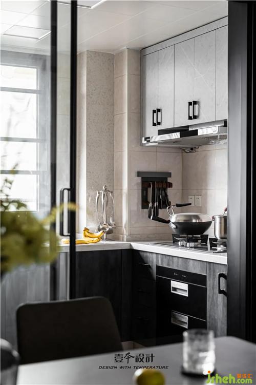 廚房我們把櫥柜門板換了,白色的臺面灰色的門板,也同樣是很經(jīng)典的搭配,油煙機(jī)上安裝了吊柜,盡可能增加儲物空間,且使用起來比較耐臟一些。室內(nèi)設(shè)計師