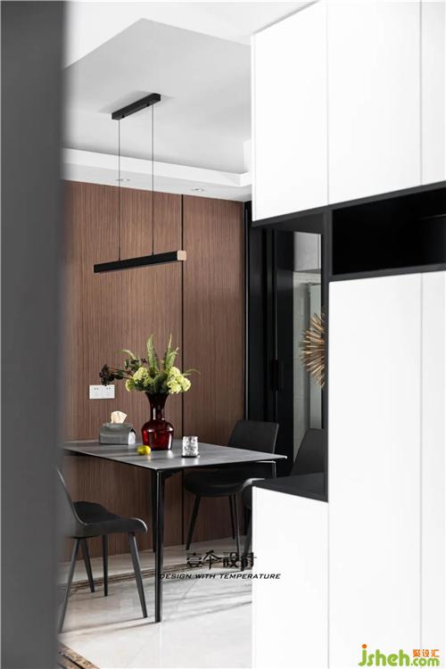 簡潔的造型設(shè)計,線條的設(shè)計語言,精巧的家具造型,訴說著空間氛圍的雅致,無形中透露著業(yè)主的生活品位,讓人在用餐時也能擁有輕松愉悅的心情。