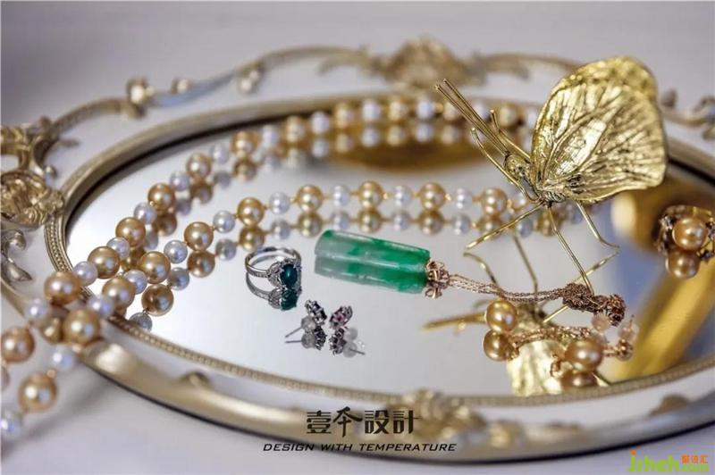 梳妝臺(tái)是女士必不可少的,不論照鏡子還是化妝都十分方便。精致的首飾在托盤上熠熠生輝。
