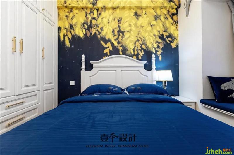 深藍(lán)色的沉穩(wěn)大氣,有著令人安心的力量。金色落葉點(diǎn)綴著神秘的深藍(lán)星空,讓空間生動(dòng)起來。