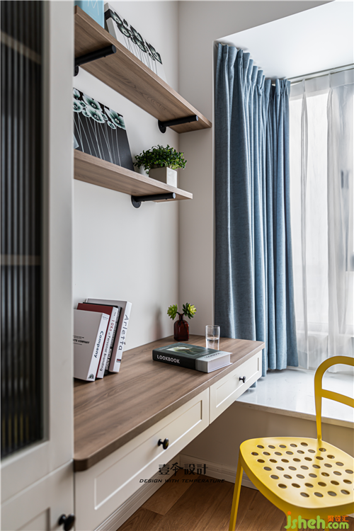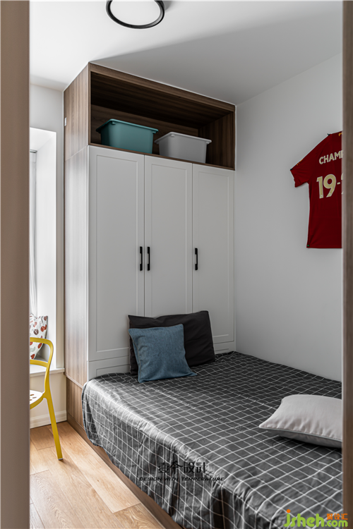 多功能房暫時(shí)作為業(yè)主的書(shū)房,以后也可以變成兒童房使用。業(yè)主是英超利物浦的忠實(shí)球迷,我們?cè)趬ι蠏炝死锲謯Z冠紀(jì)念版球衣替代裝飾畫(huà),人文情懷比空洞的畫(huà)片更能讓人產(chǎn)生家的共鳴。