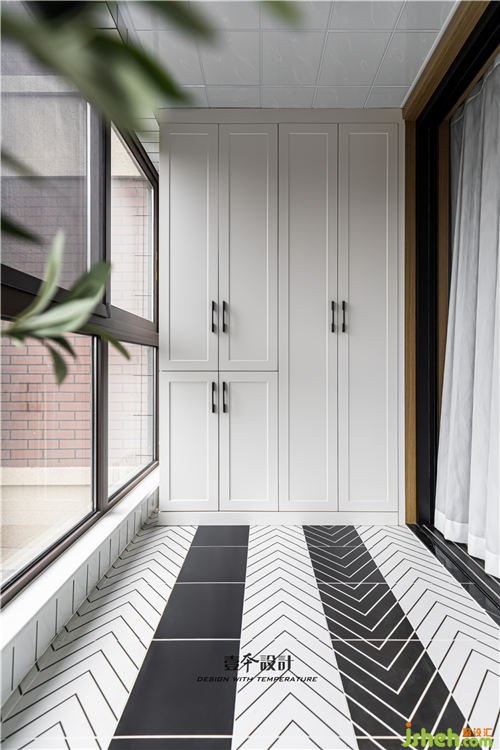 陽臺(tái)配色以白色為主,在折線紋理的地磚中跳躍了兩條黑色,空間不顯單調(diào)。