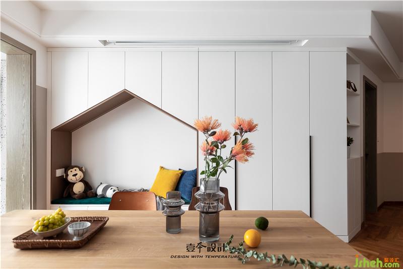 成長(zhǎng)記錄沒有文案,只有陪伴,親子關(guān)系是家庭關(guān)系中最為重要的一層,孩子是本案創(chuàng)作的第一主角。與外部世界的交流、和家庭的相處以及在自己的世界中玩耍,這些對(duì)孩子來說缺一不可,作為家長(zhǎng)應(yīng)該尊重孩子的想法,平等的和他們交流。本案業(yè)主陽(yáng)老師是一名幼兒園老師,所以她更懂孩子的需求,更注重與自己孩子的相處模式。室內(nèi)設(shè)計(jì)師為了能給兩個(gè)寶貝營(yíng)造更自由更寬闊的活動(dòng)空間,我們?nèi)サ舫R?guī)的客廳沙發(fā)布局,以樹洞的場(chǎng)景化設(shè)計(jì)為創(chuàng)作靈感,賦予空間趣味性,讓父母陪伴孩子一起快樂成長(zhǎng)。