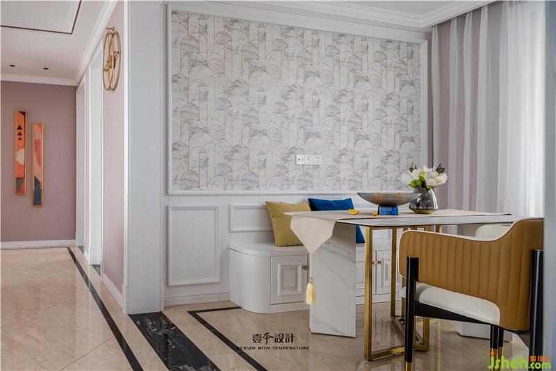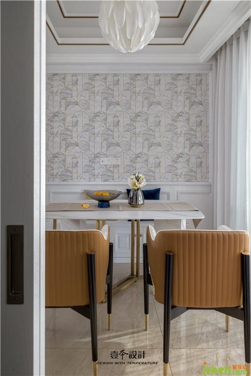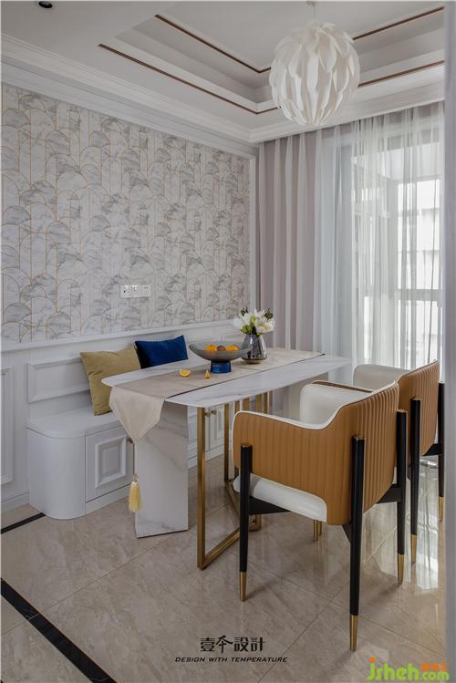 卡座餐廳時尚又實用,卡座下面可以做儲藏柜,上面放上抱枕,溫馨感瞬間提升。輕奢精致的餐桌椅,室內設計師在金屬、石材與皮藝質感的結合搭配下,呈現(xiàn)出有儀式感的用餐氛圍。