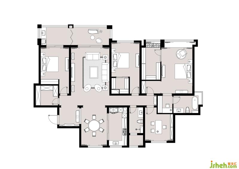 2:將北面小陽臺納入餐廳區(qū)域,增大餐廳面積。