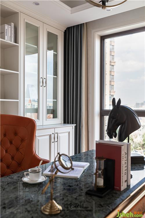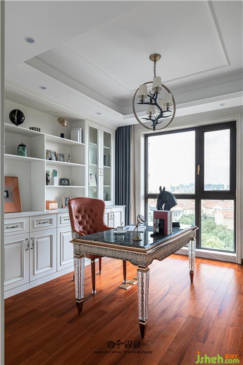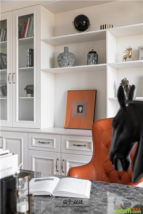 書房靠墻設(shè)計一整面的大書柜做背景,簡單實用,書柜前擺上一套精心挑選的書桌椅,轉(zhuǎn)身就能取到書籍或文件,工作或?qū)W習(xí)起來也會很方便。