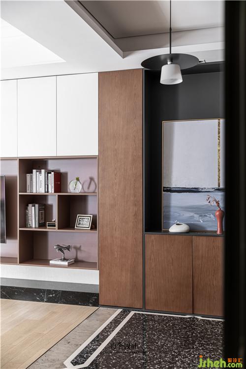 將原本玄關(guān)茶鏡去掉,設(shè)置了玄關(guān)柜,強(qiáng)化空間的區(qū)域感,增加儲(chǔ)物功能。