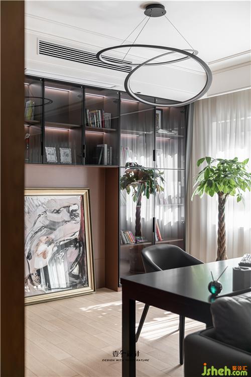 客廳沙發(fā)背后打造成為休閑的書房區(qū)域,室內(nèi)設(shè)計師用沙發(fā)與書桌將區(qū)域分隔,在這里看看書沐浴陽光,好不愜意?,F(xiàn)在落地畫擺放的位置是將來為孩子們預(yù)留放鋼琴的地方。