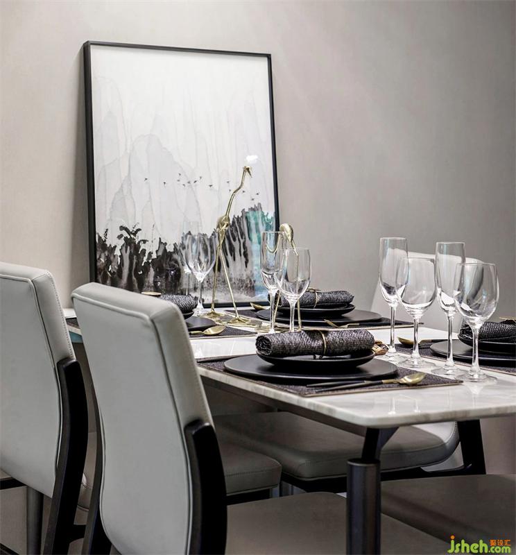 空間布局決定著功能性與舒適性的平衡,通過材質(zhì)劃分功能屬性的差異,配以空間高度的微妙變化,使得客廳與餐廳空間融會(huì)貫通的同時(shí),又互相獨(dú)立開來。